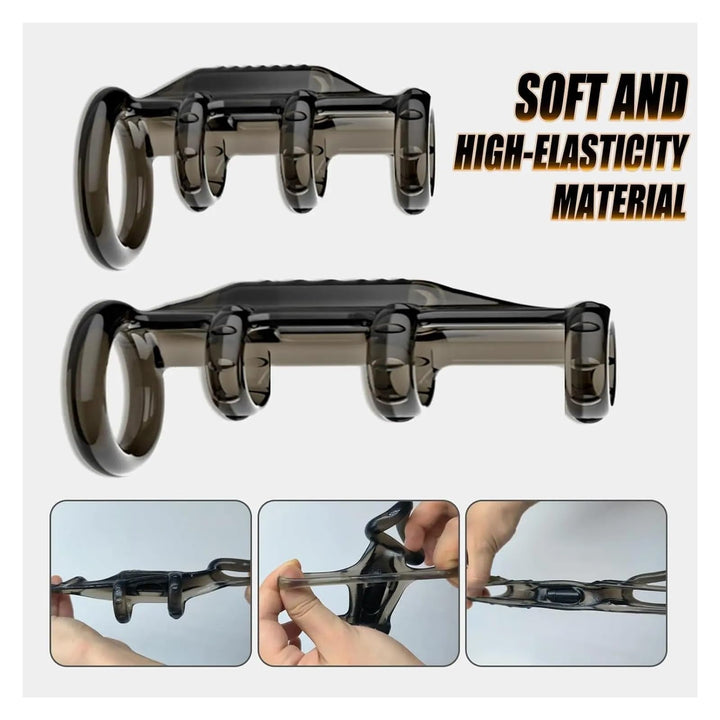 Säker 3-ringdesign: Till skillnad från enkla/dubbla ringar sitter 3-ringsstrukturen stadigt utan att glida under intensiv lek. Mjukt, texturerat TPE-material säkerställer komfort för både dig och din partner.